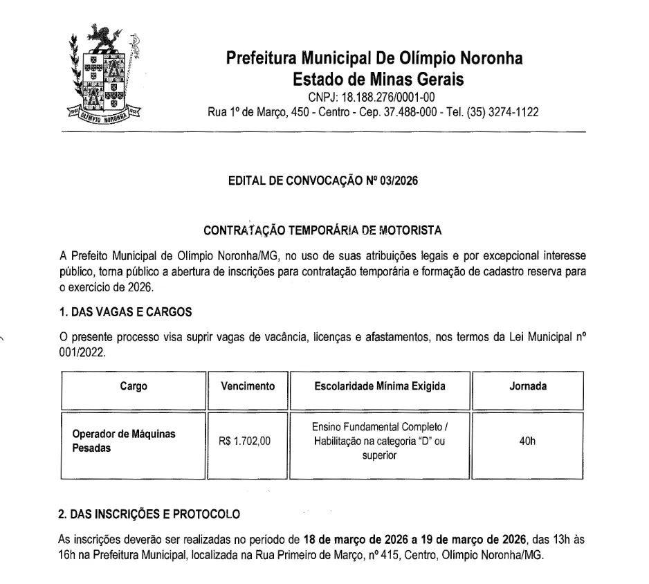 Nos dias 13, 14 e 15 de março de 2026, o Cartório de Lambari e o TRE-MG, em parceria com...