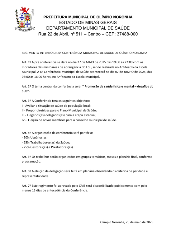 Art. 1º A pré conferência se dará no dia 27 de MAIO de 2025 das 19:00 às 22:00 com os...